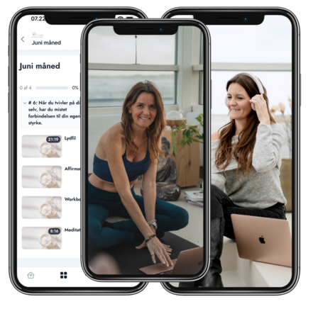 Når du logger ind, kan du altid åbne månedens tema, din workbook, lydfiler, meditationer og live-optagelser – præcis dér, hvor du er.